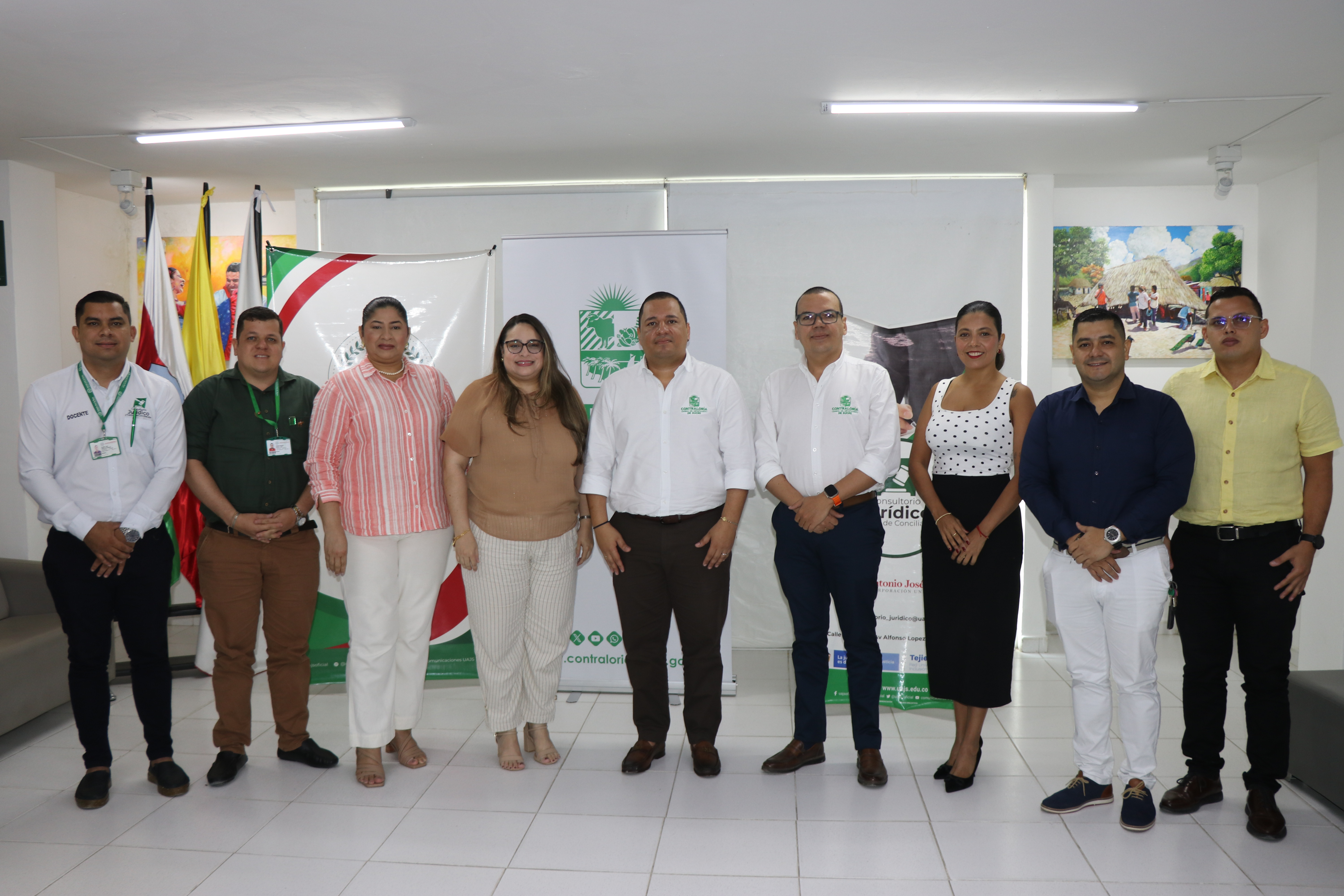 El evento contó con la participación de representantes de ambas entidades, entre ellos el contralor departamental, Jorge Beleño Baggos; el subcontralor, Rafael Vargas; la rectora de UAJS, Sonia Carolina Peralta Díaz, junto a las vicerrectoras Yira Rosa Meléndez Monrroy y Luisa García Pineda. Asimismo, asistieron integrantes del cuerpo de trabajo de la Contraloría, delegados de la Procuraduría, representantes de Fenalco Sucre y Comfasucre, miembros del comité de control social, así como directivos, decanos, directores de programa, docentes y estudiantes de UAJS de los diferentes programas y Consultorio Jurídico.